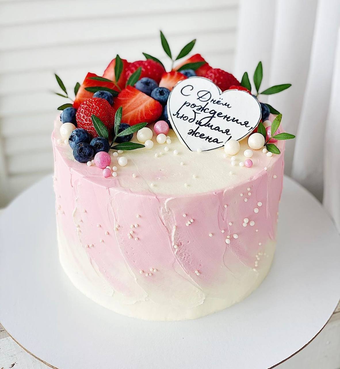Он украшен яркими ягодами, которые аккуратно сочетаются друг с другом.